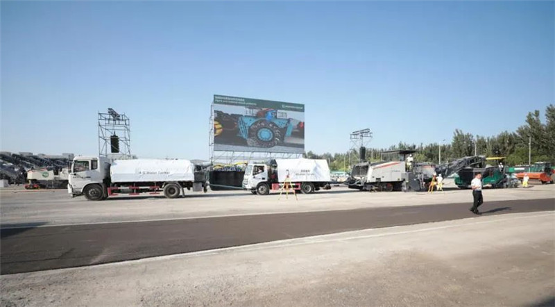 在現(xiàn)場(chǎng)演示環(huán)節(jié),在場(chǎng)的嘉賓及客戶都對(duì)新技術(shù)表現(xiàn)出了濃厚興趣,通過現(xiàn)場(chǎng)可以看到 W 380 CR 機(jī)隊(duì)一條再生的工藝,可以直觀感受就地冷再生流程。通過現(xiàn)場(chǎng)講解人員的講解,可以清晰地了解這項(xiàng)工藝的特點(diǎn),為什么可以具有如此多經(jīng)濟(jì)和環(huán)保效益的原因。