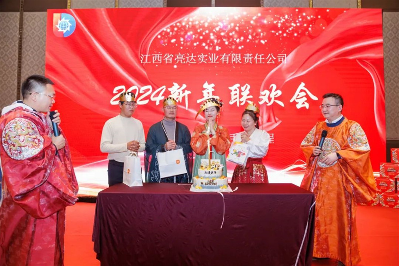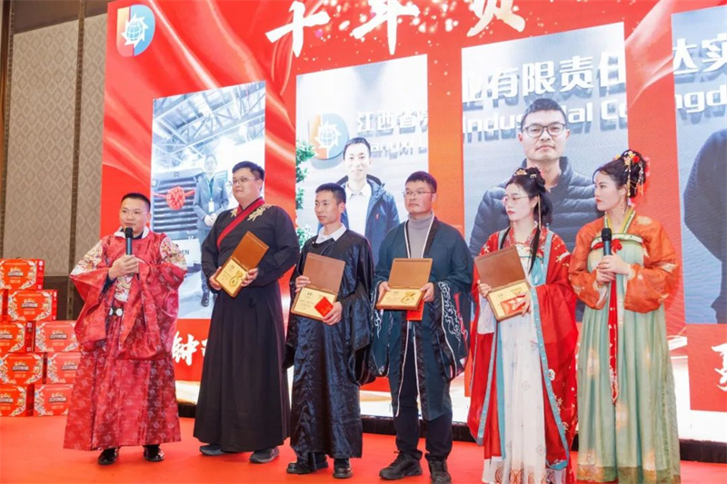 在近一個(gè)多小時(shí)的歡慶之后,江西亮達(dá)的十年員工鐘歡、曾纛、謝科強(qiáng)和夏侯燁紛紛走上臺前,分享了他們在公司十年間的點(diǎn)點(diǎn)滴滴。他們的話語中充滿了對江西亮達(dá)的深情和感激,讓在場的每一位觀眾都深受感動(dòng)。隨后,董事長顏總和總經(jīng)理盧總親自上臺為這些老員工頒發(fā)了獎(jiǎng)項(xiàng),這不僅是對他們多年辛勤工作的肯定,也激勵(lì)著臺下的年輕員工,展示了公司對員工的重視和對未來的期望。十年的志同道合,十年的風(fēng)雨同舟,十年的同甘共苦;這一刻,是江西亮達(dá)團(tuán)隊(duì)凝聚力和堅(jiān)持精神的生動(dòng)體現(xiàn),希望新的一年老員工和新員工們可以齊心協(xié)力,在公司中謀求更好地發(fā)展,實(shí)現(xiàn)自己的個(gè)人價(jià)值。